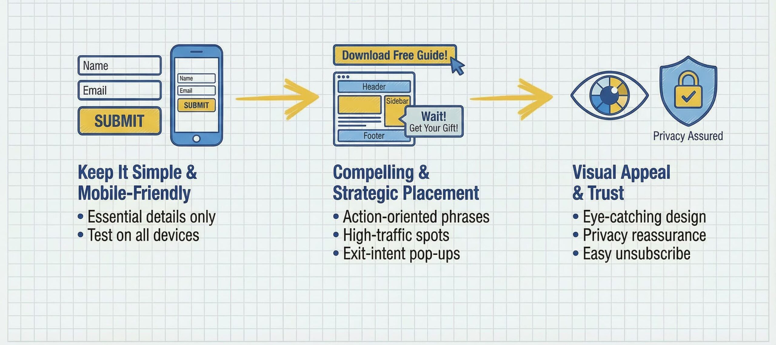 - Keep It Simple: Request only essential details, like a name and email address. Avoid asking for too many details upfront, as this can reduce sign-ups.