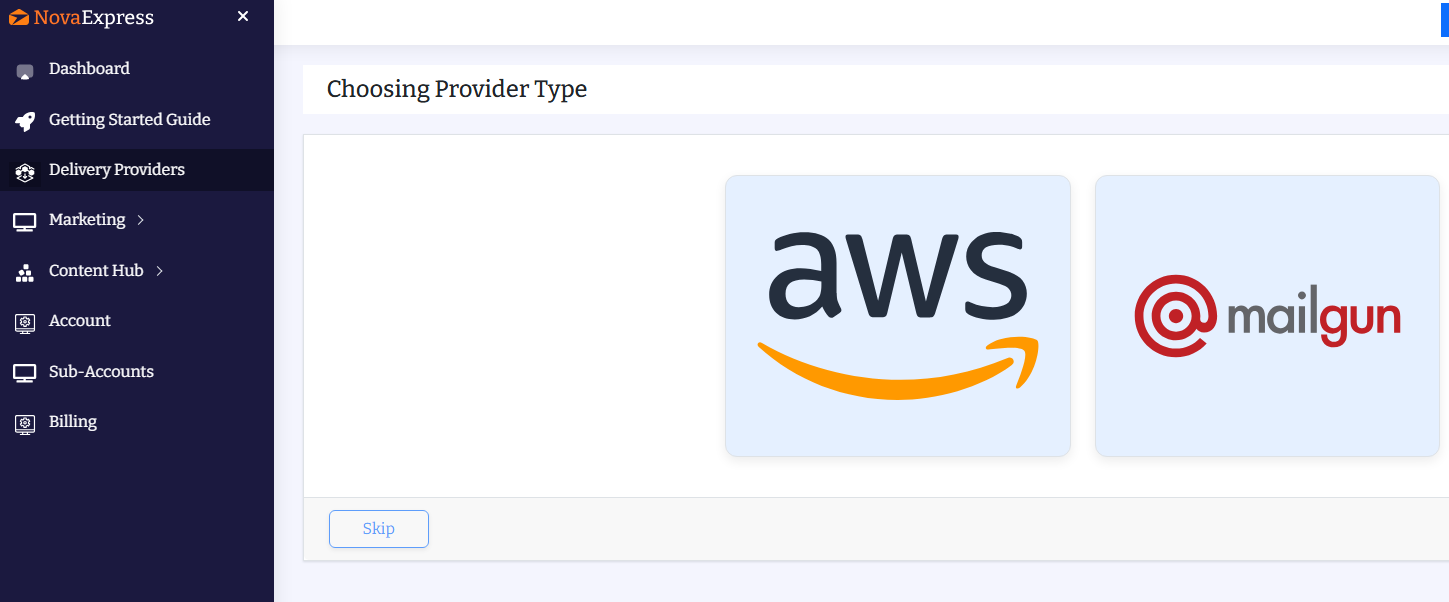 Step 1: Choose Amazon SES as Your Email Delivery Provider in Nova Express