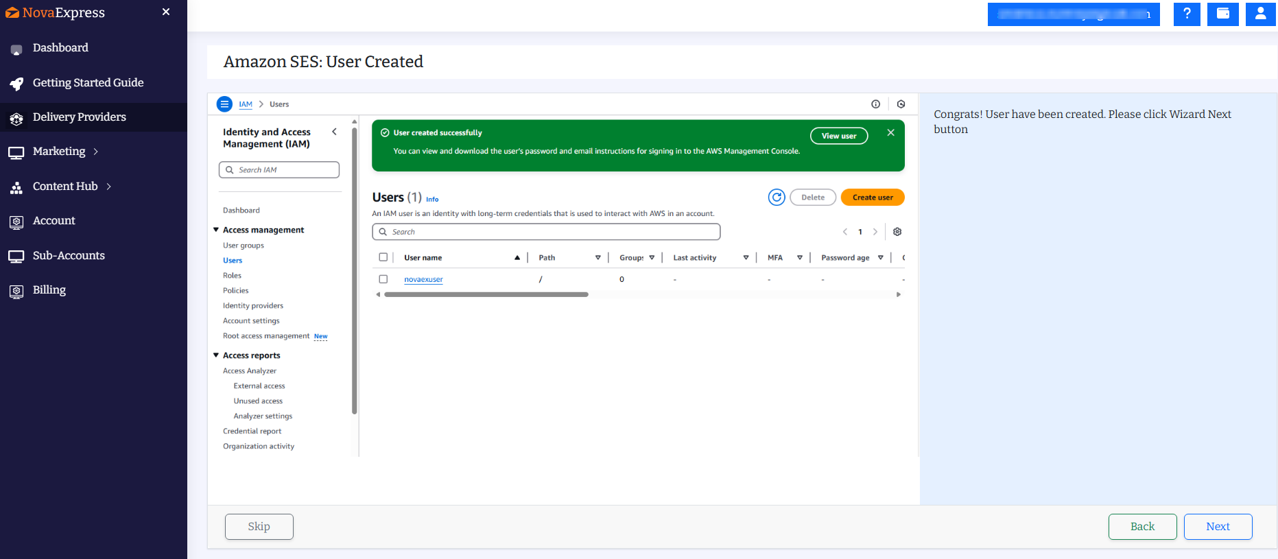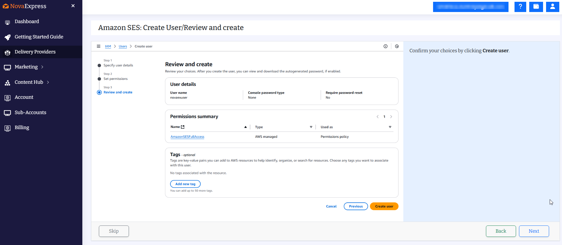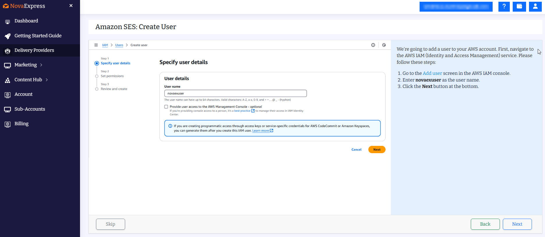 Step 2: Launch the Guided Amazon SES Setup in Nova Express