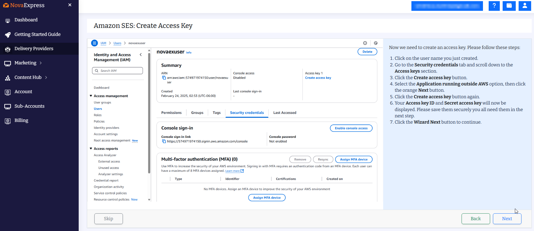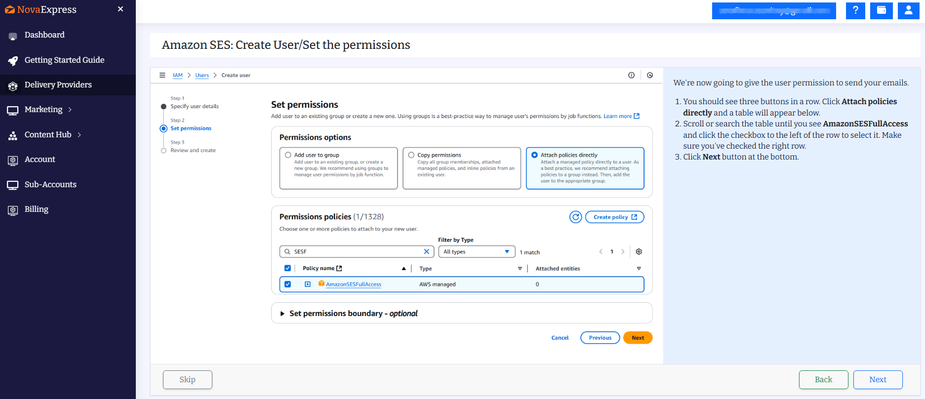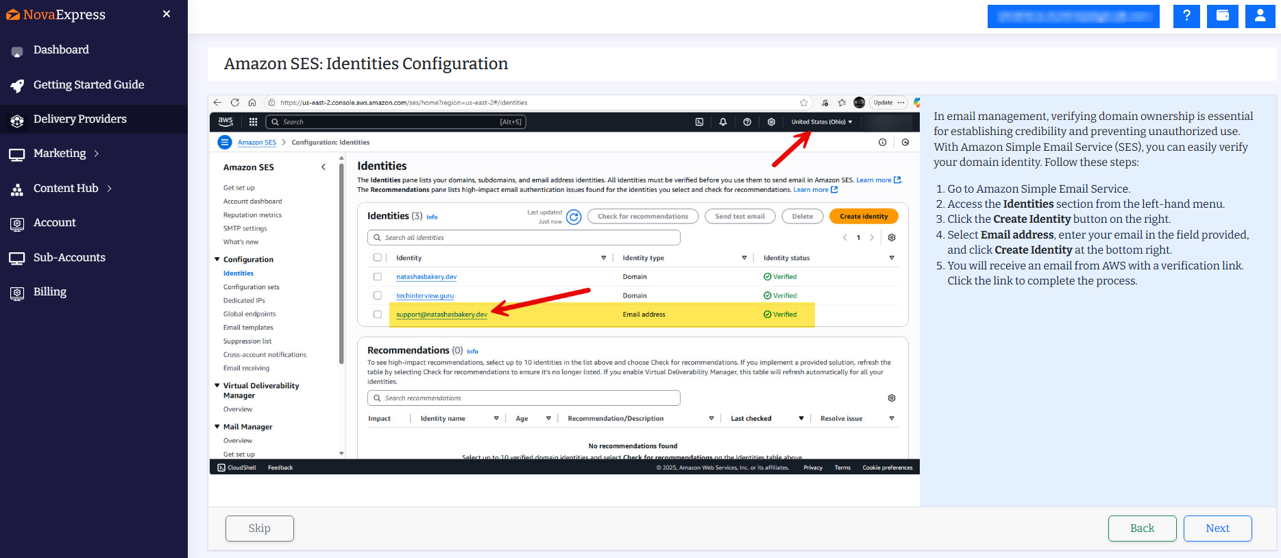 Step 2: Launch the Guided Amazon SES Setup in Nova Express