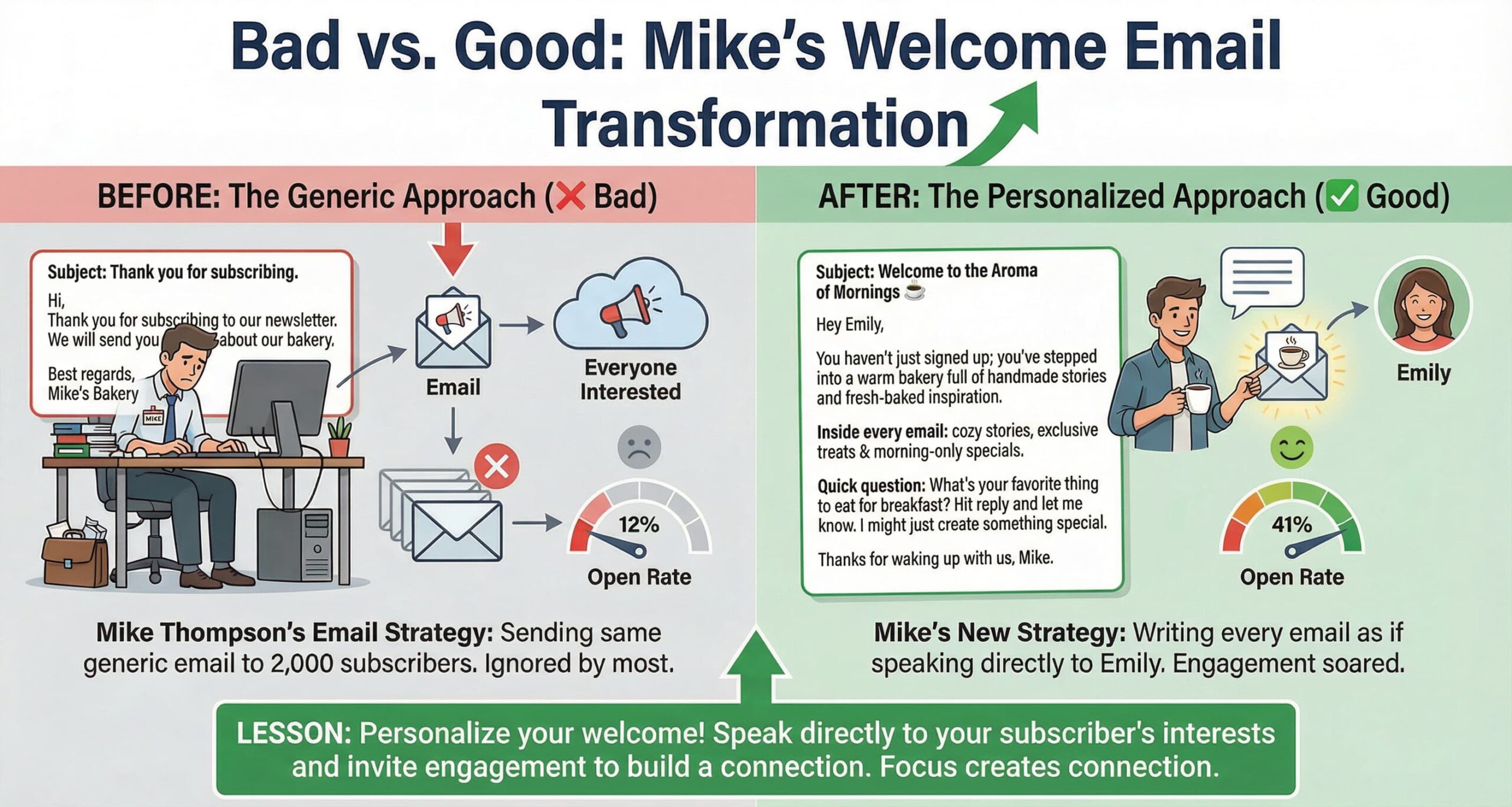 The welcome email has an 86% average open rate, and subscribers who receive one are 33% more engaged long-term. Most businesses waste this moment with a boring “Thanks for subscribing!”