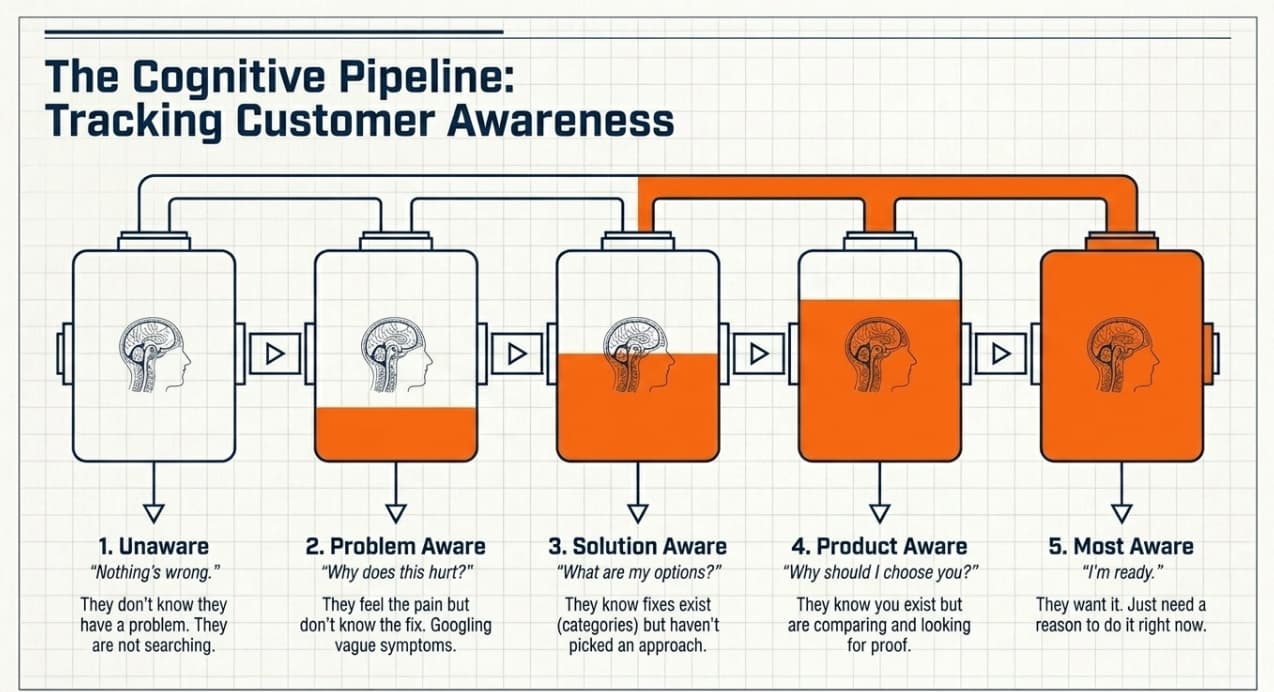 The single biggest mistake in marketing is talking to Level 1 audiences like they’re at Level 5. Pitching a 20% discount to someone who doesn’t know they have a problem. Showing a product demo to someone who hasn’t decided what kind of solution they need.